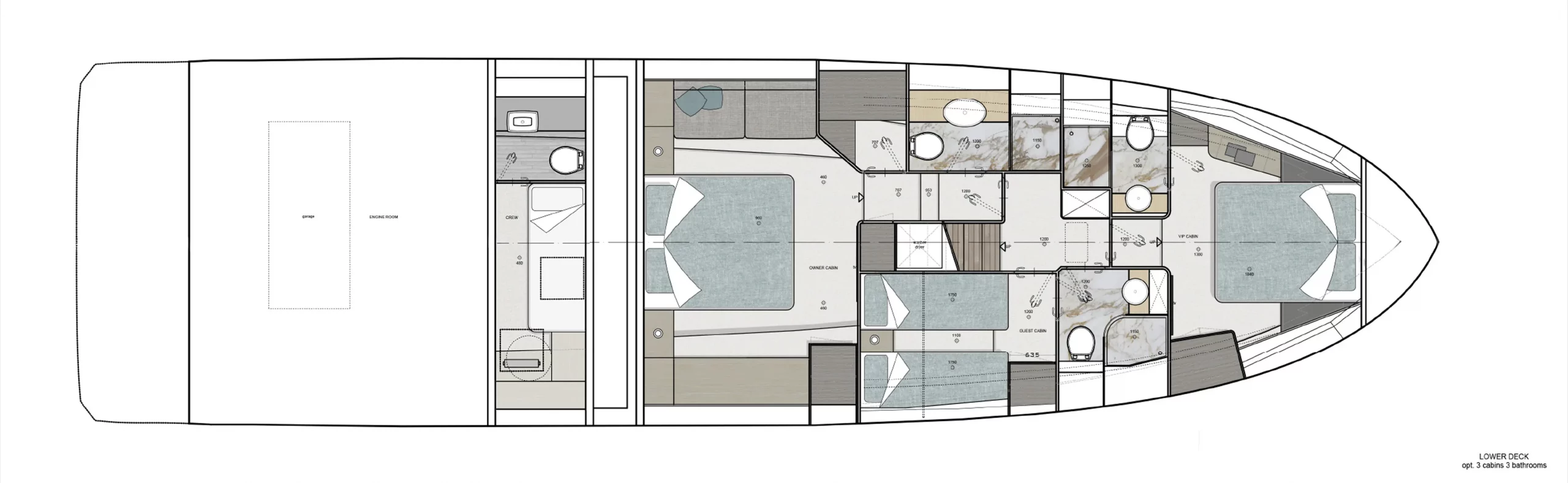 Geräumige Kabinen und elegante Flybridge