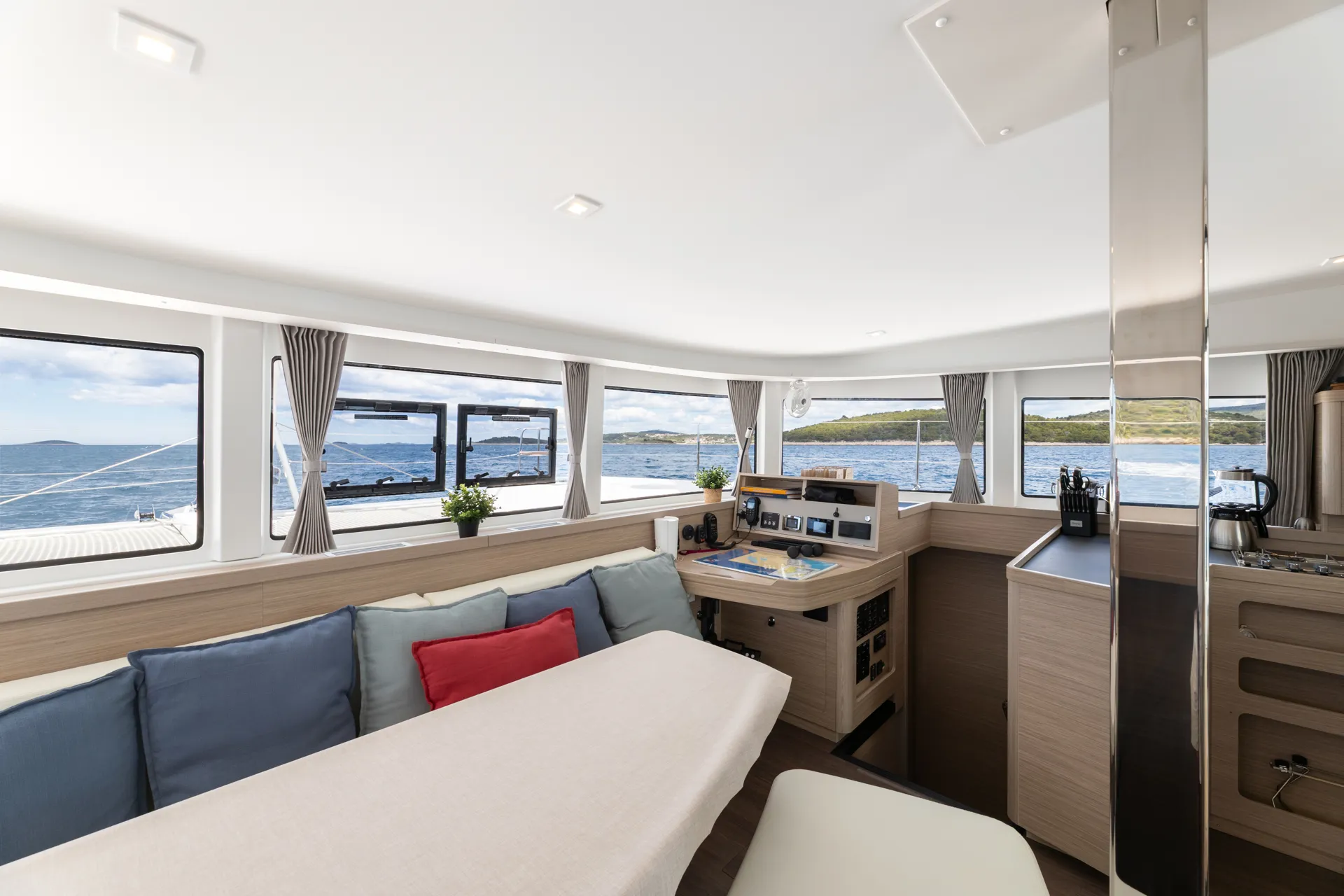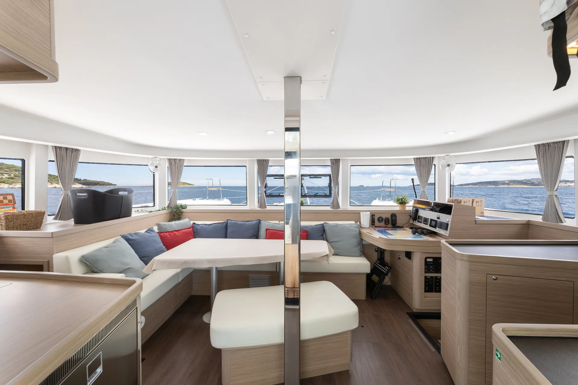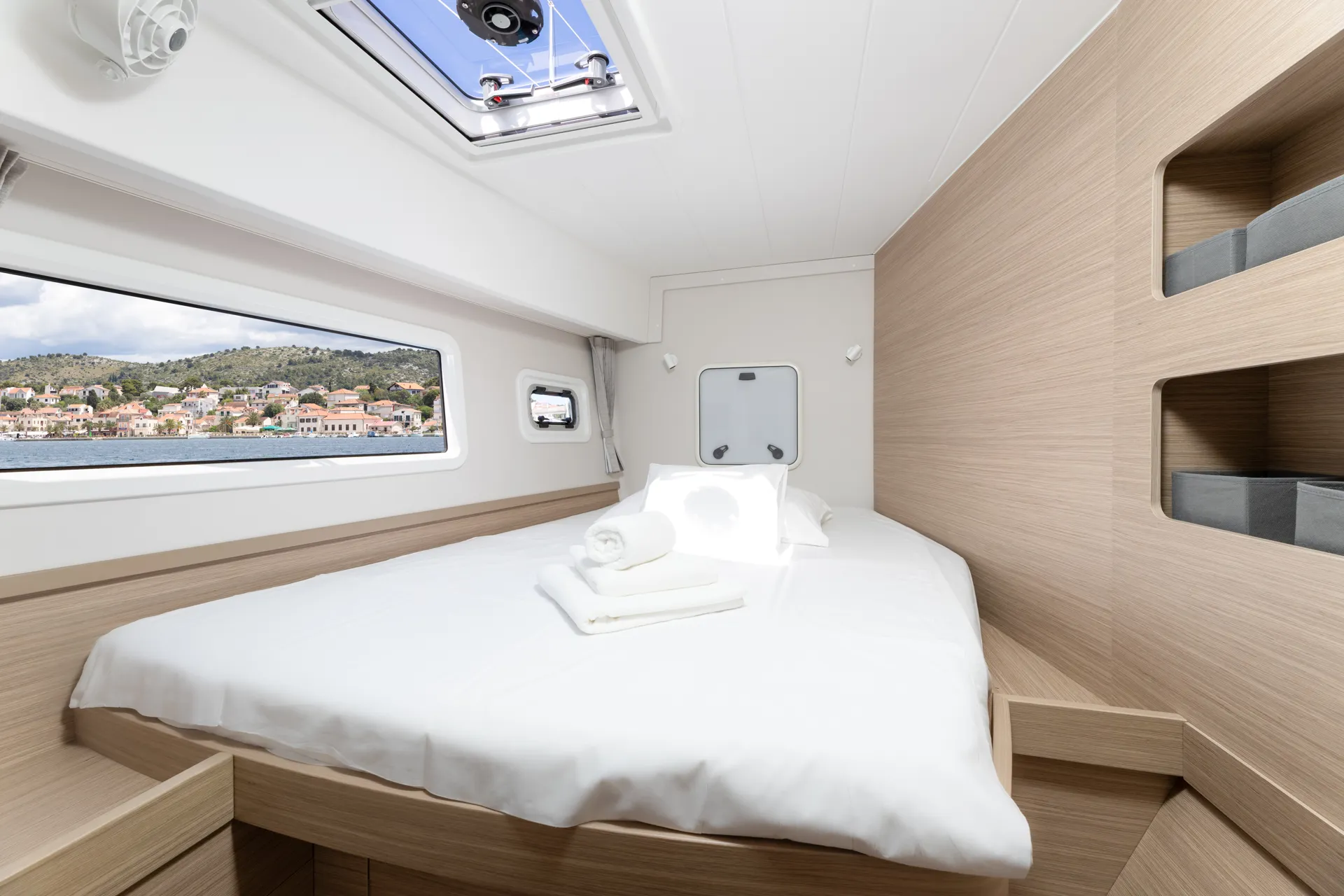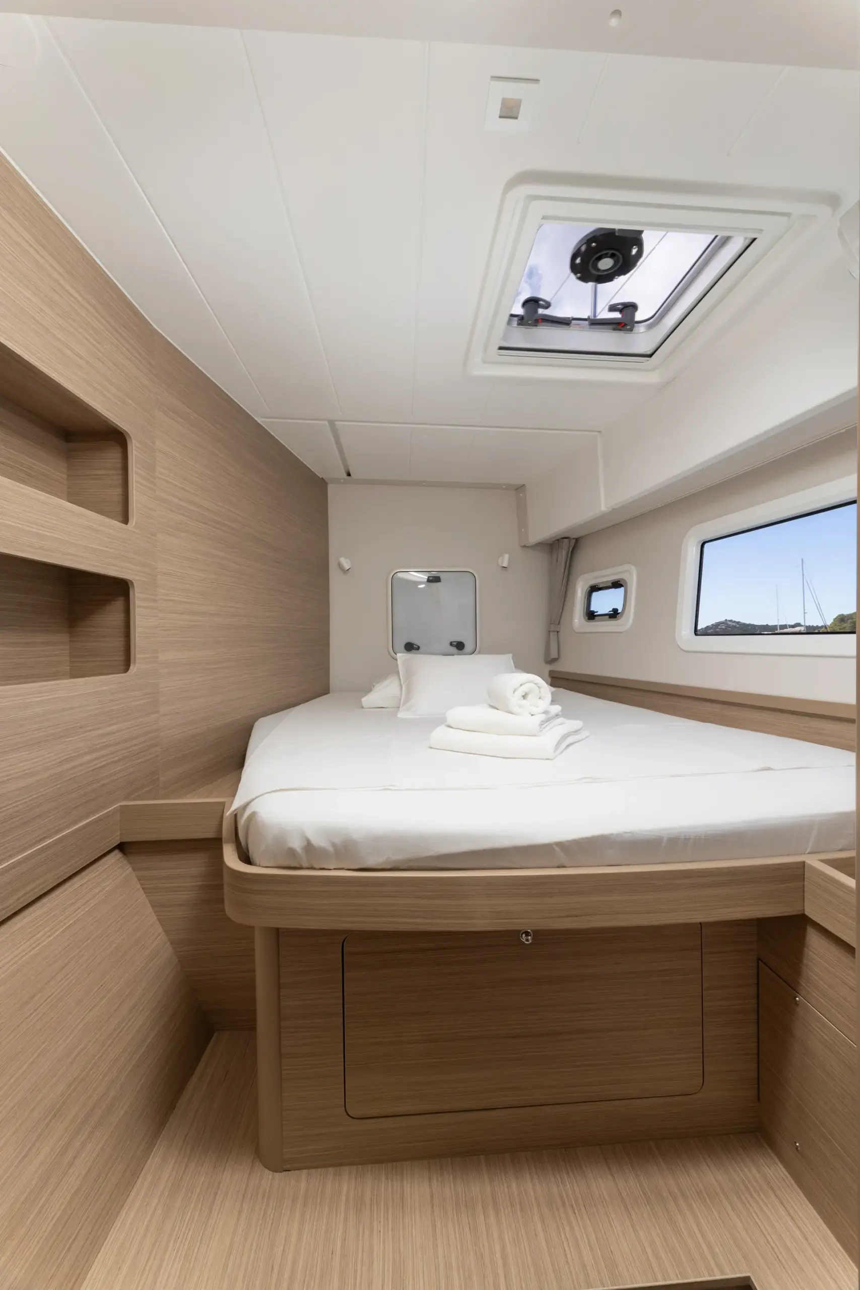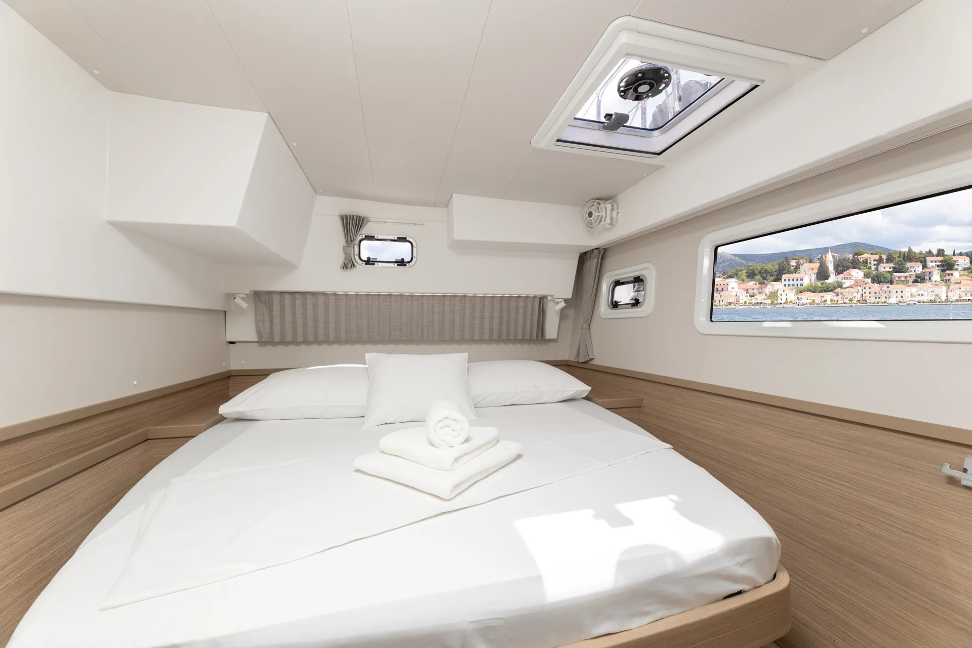 Die Lagoon 42 – Lady Aurora besticht durch ihr großzügiges Platzangebot und außergewöhnlichen Komfort. Mit vier Doppelkabinen und zwei Bug-Kabinen für Skipper und Hostess bietet sie mehr als genug Raum für alle. Genießen Sie die Annehmlichkeiten einer modernen Yacht, darunter eine Klimaanlage im Salon und den Kabinen, die für ein angenehmes Raumklima sorgt. Zudem ist der Katamaran mit einem Generator und einem Wassermacher ausgestattet, was Ihnen ein autarkes Reisen ermöglicht. Der Autopilot und das Tiefkühlfach tragen zu einem sorgenfreien Segelerlebnis bei.
