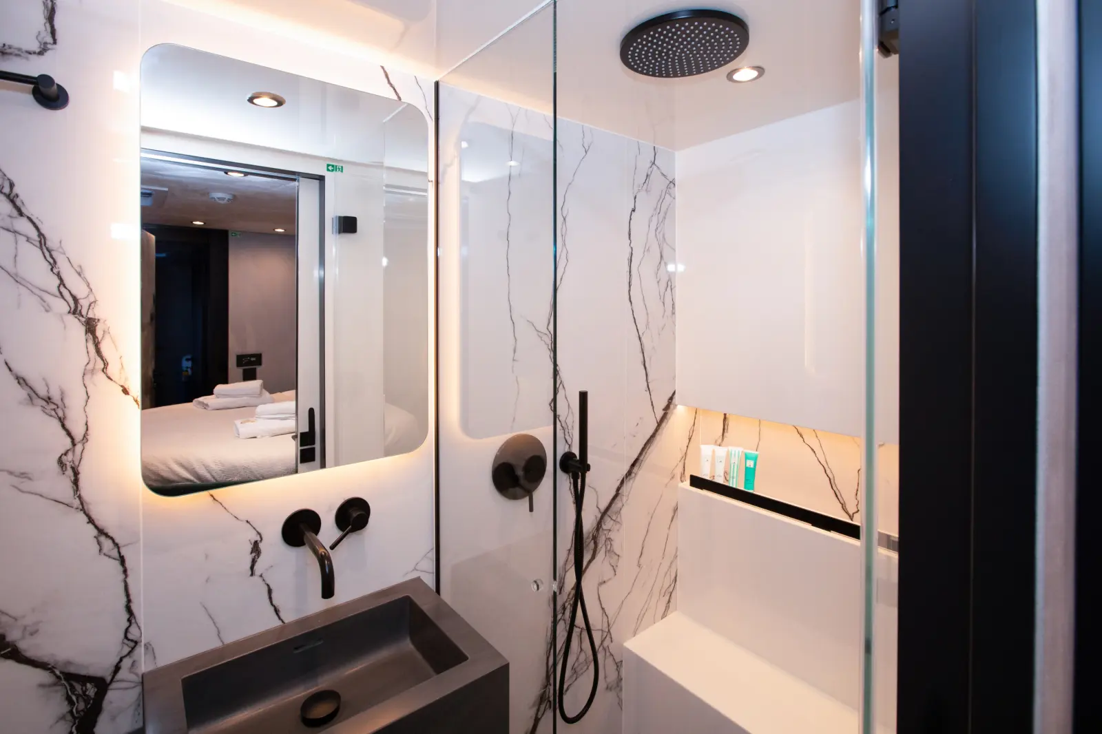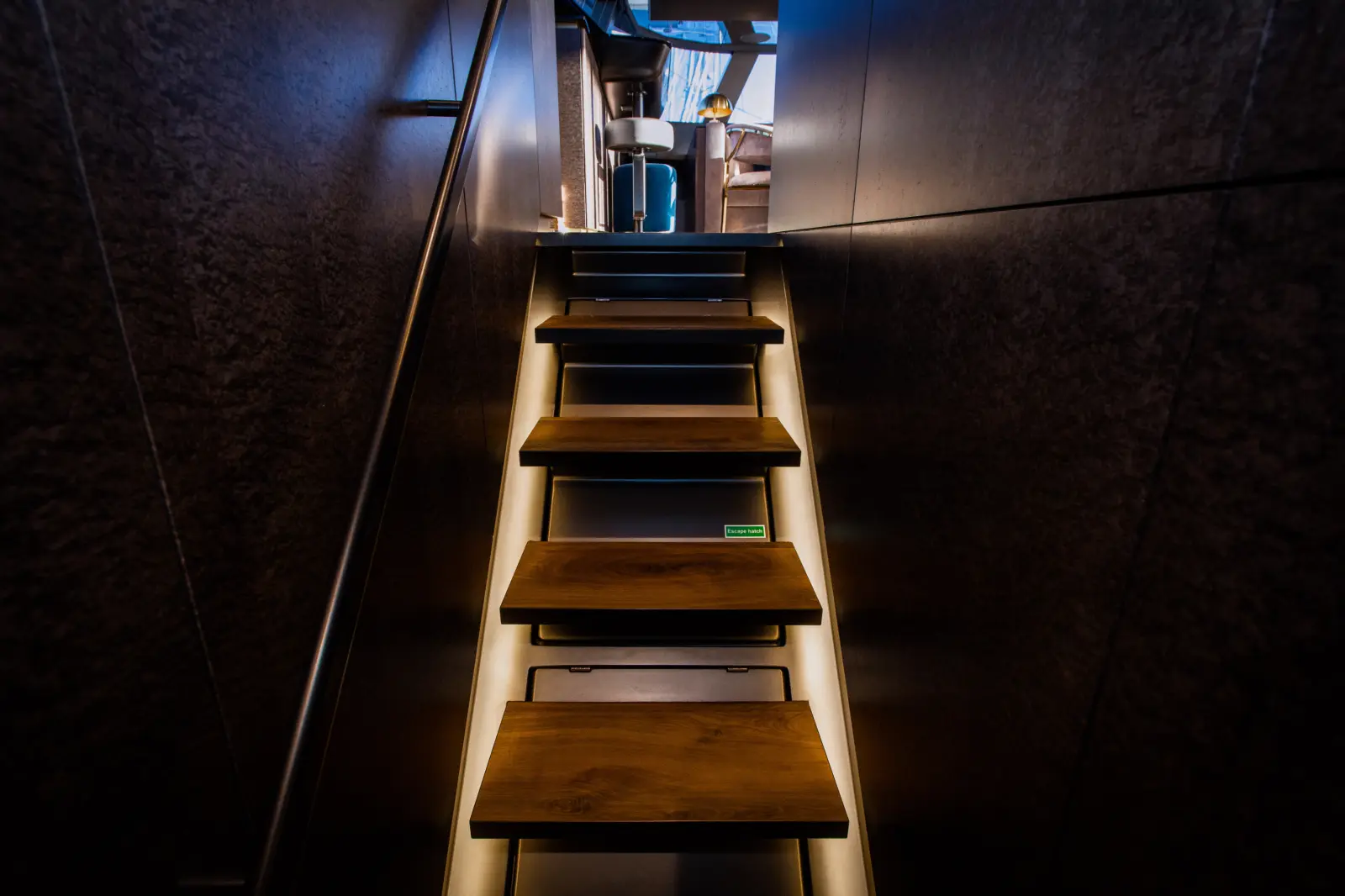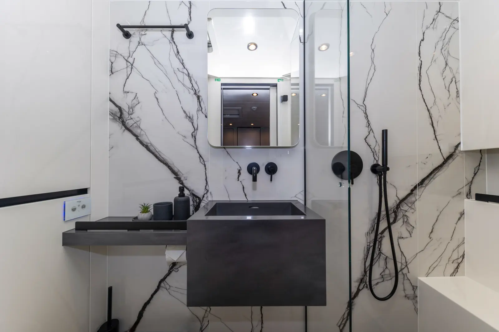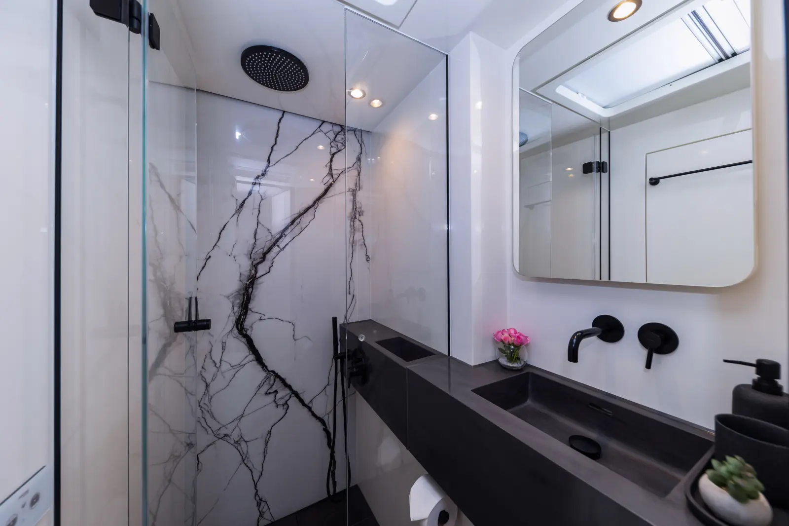 - Vier stilvolle Doppelkabinen: An Bord finden bis zu 8 Gäste in vier luxuriösen Doppelkabinen mit eigenem Bad Platz. Jede Kabine ist eine private Oase der Ruhe, geschmackvoll eingerichtet und mit allem Komfort ausgestattet, der für einen erholsamen Schlaf sorgt.