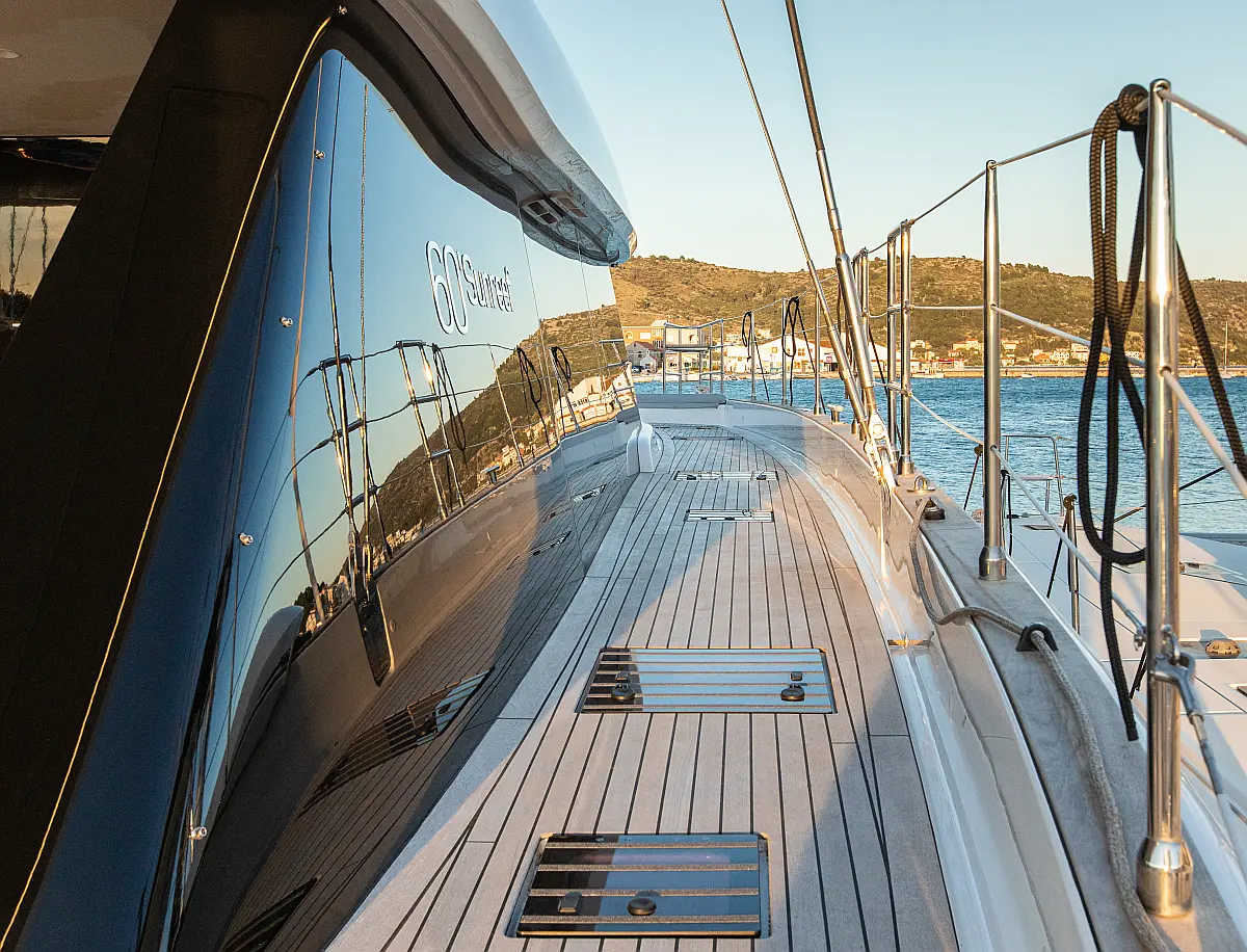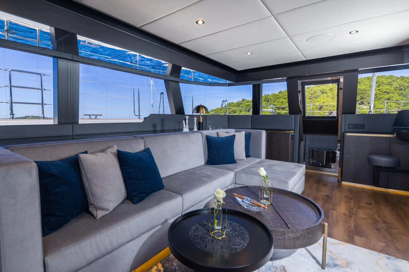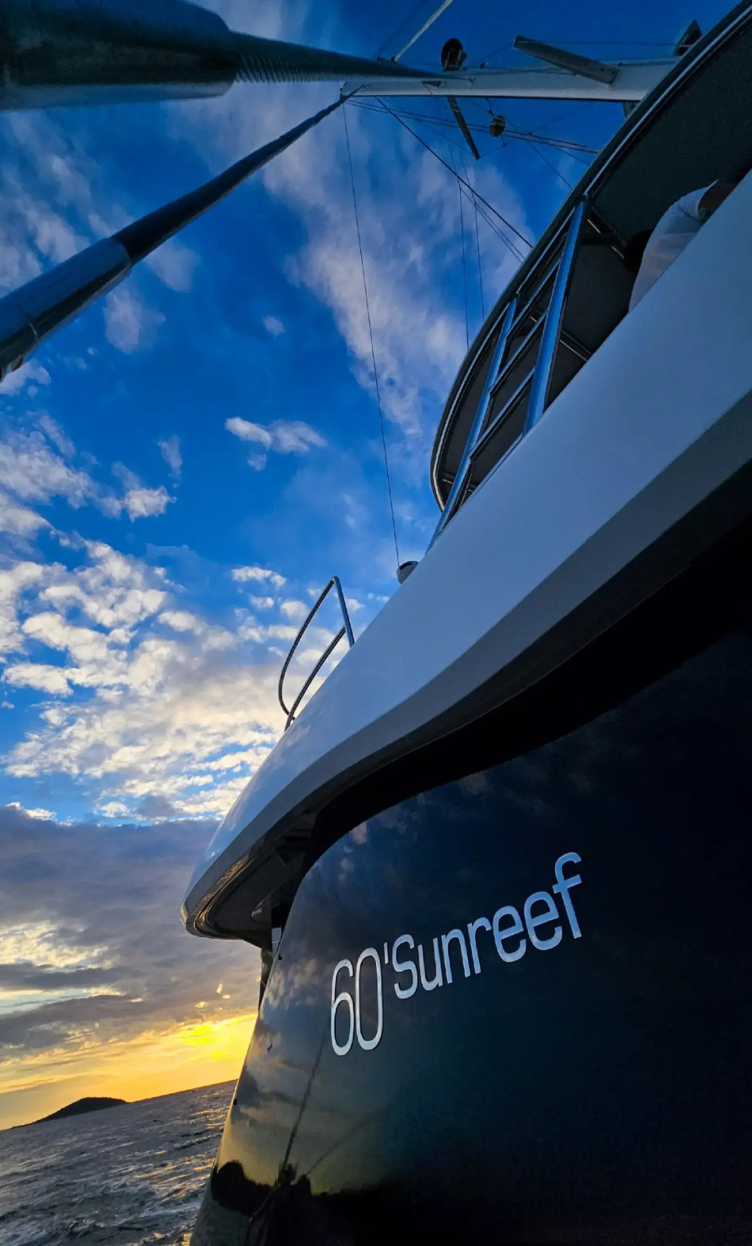 - Weitläufige Außenbereiche: Die Sunreff 60 – Mr. Si“ besticht durch ihre großzügigen Außenbereiche. Das Vordeck lädt mit seinen bequemen Liegeflächen zum Entspannen ein, während die Flybridge ein beeindruckendes Sonnendeck mit Sitzgelegenheiten und oft auch einer Bar bietet – der perfekte Ort für Sundowner mit unvergleichlicher Aussicht.