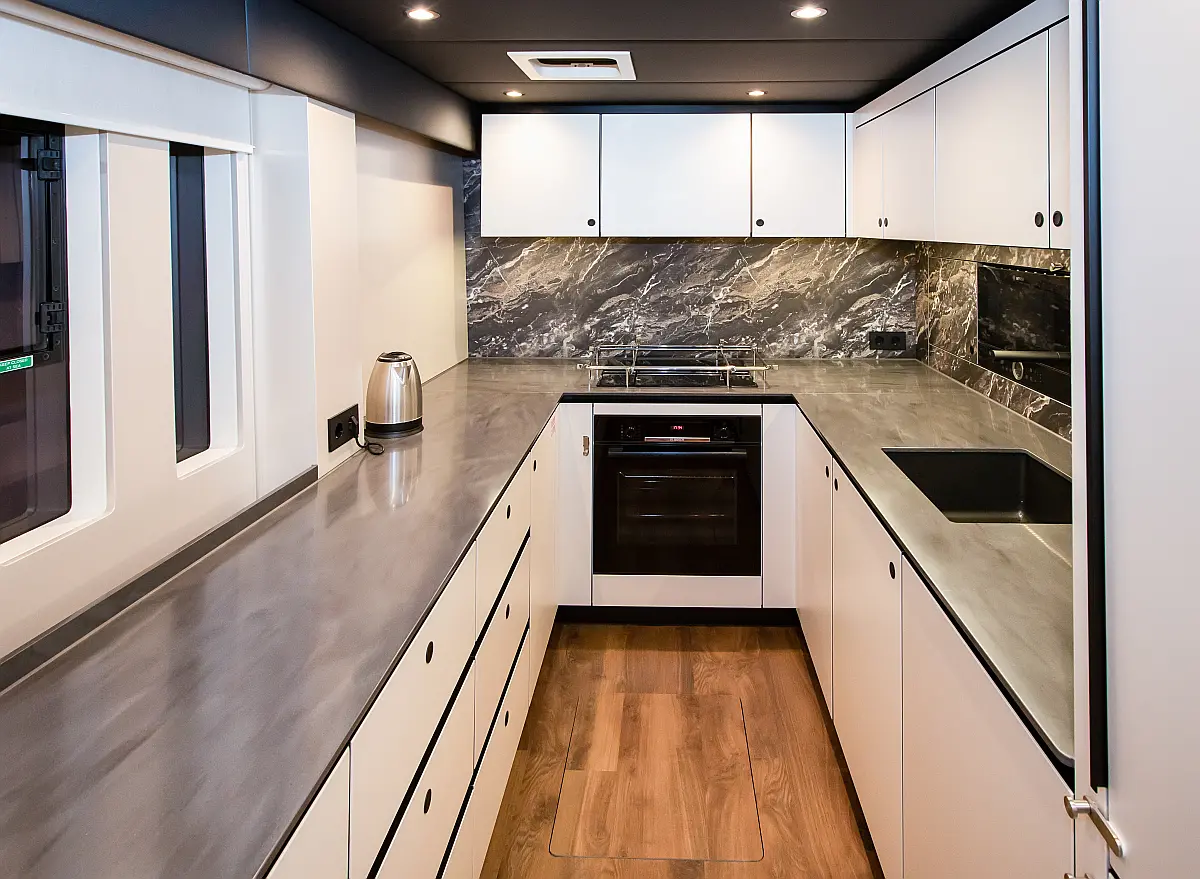 - Panorama-Salon mit 360°-Blick: Der helle und luftige Hauptsalon mit seinen großen Fenstern bietet einen atemberaubenden Panoramablick auf das Meer und die vorbeiziehende Landschaft. Hier können Sie entspannt dinieren, Gesellschaftsspiele spielen oder einfach die Aussicht genießen.