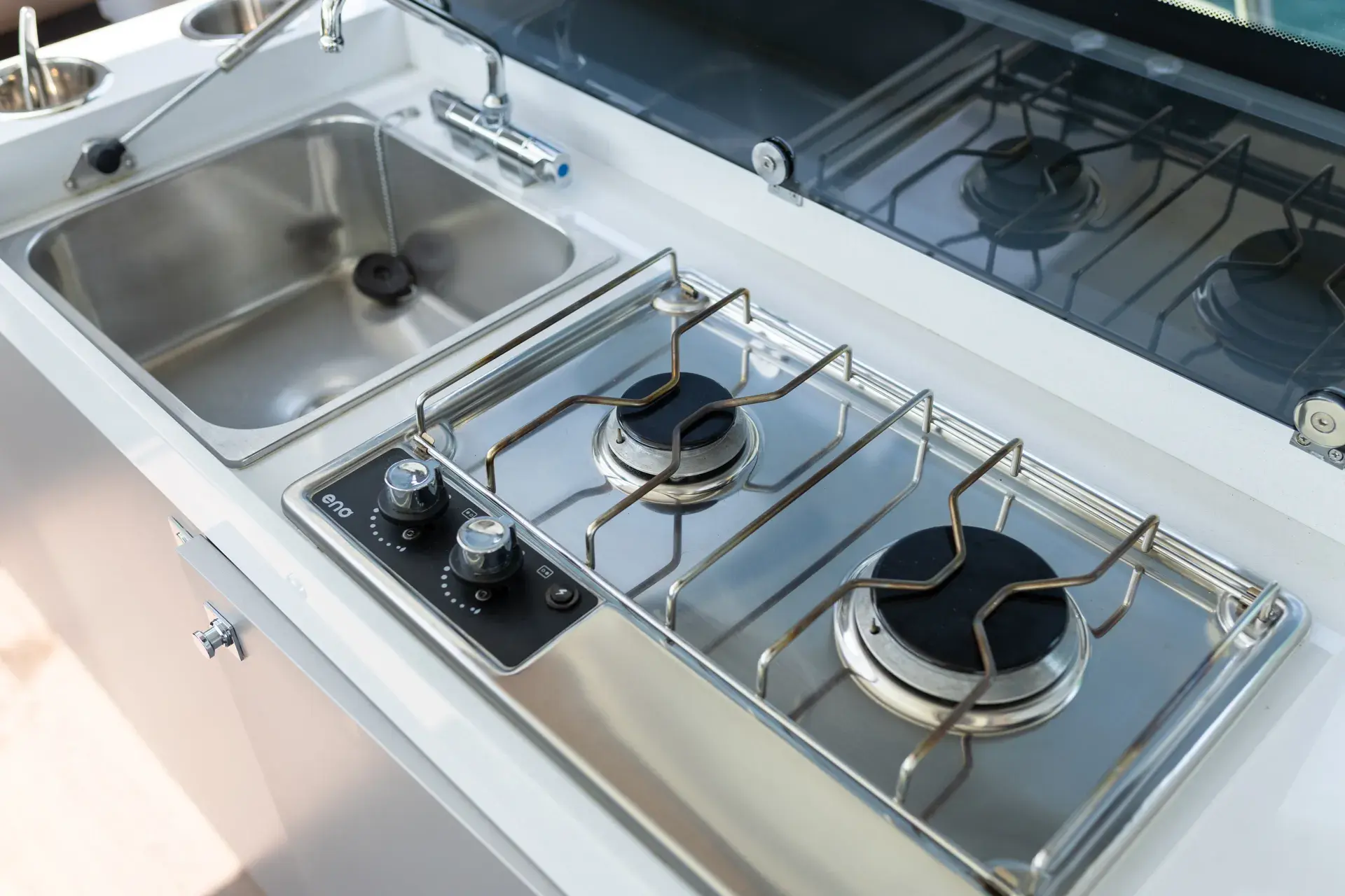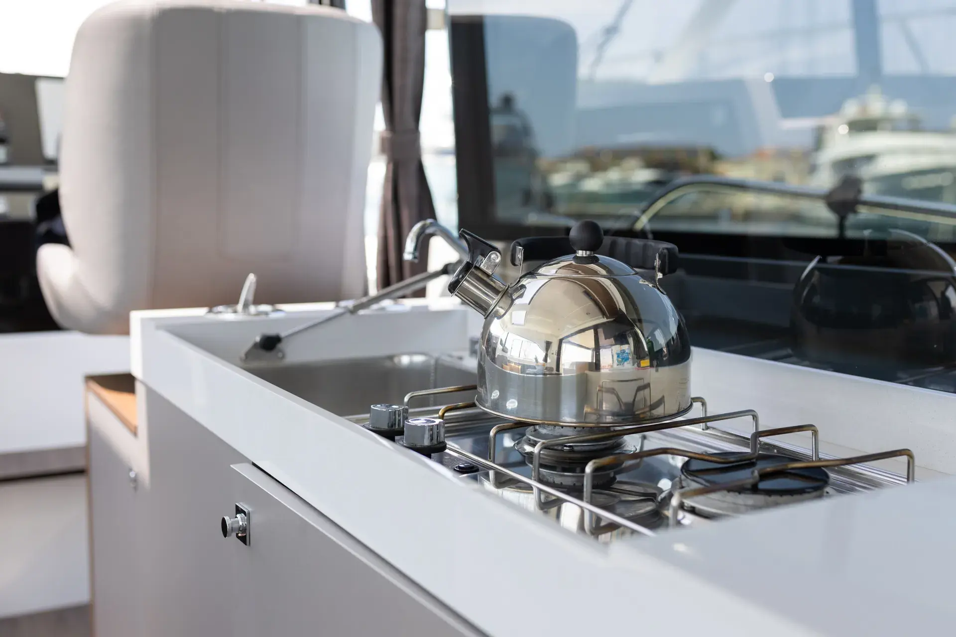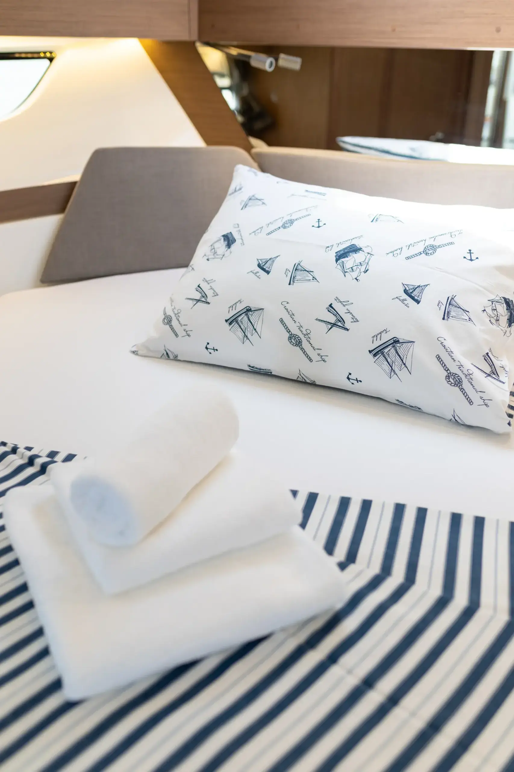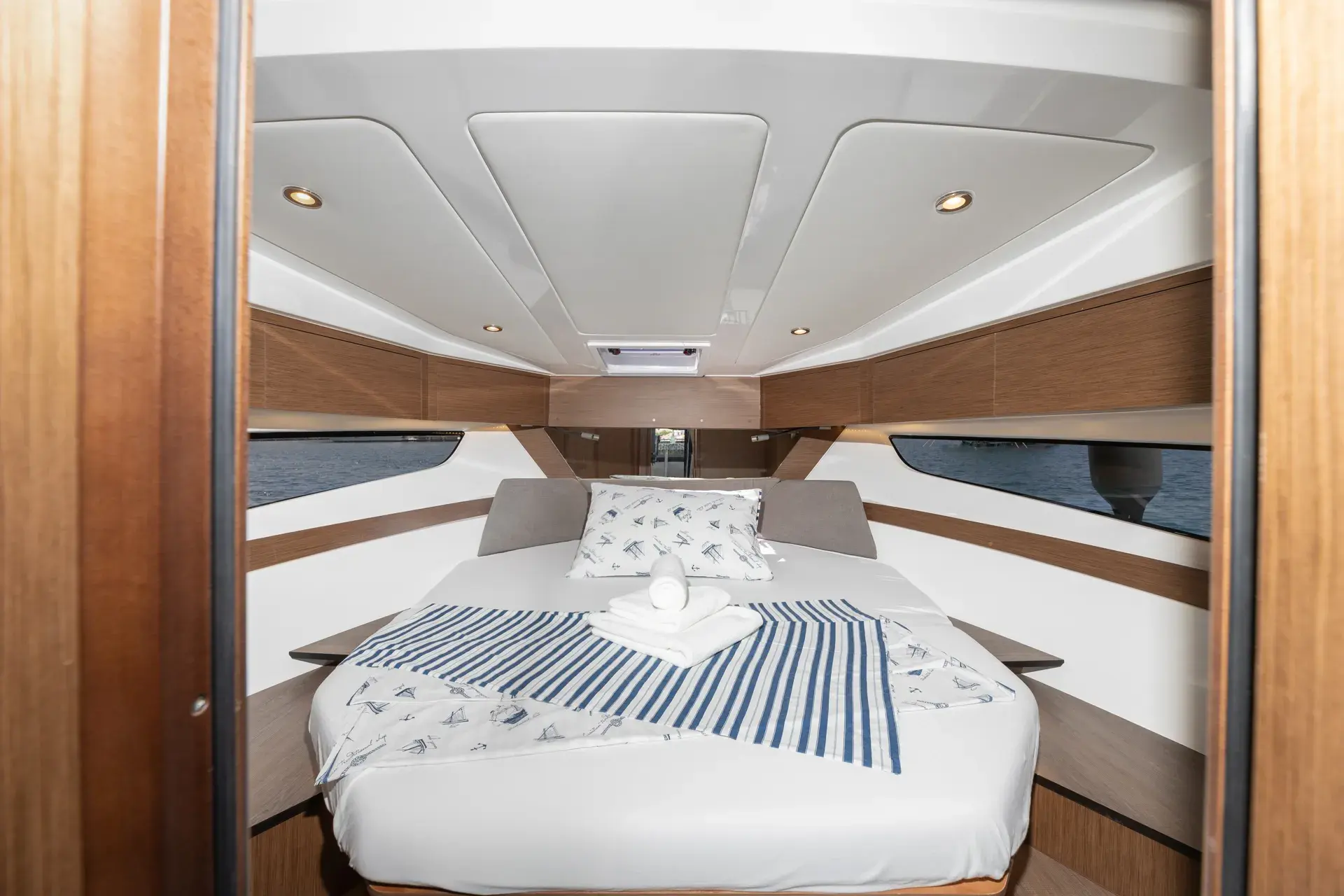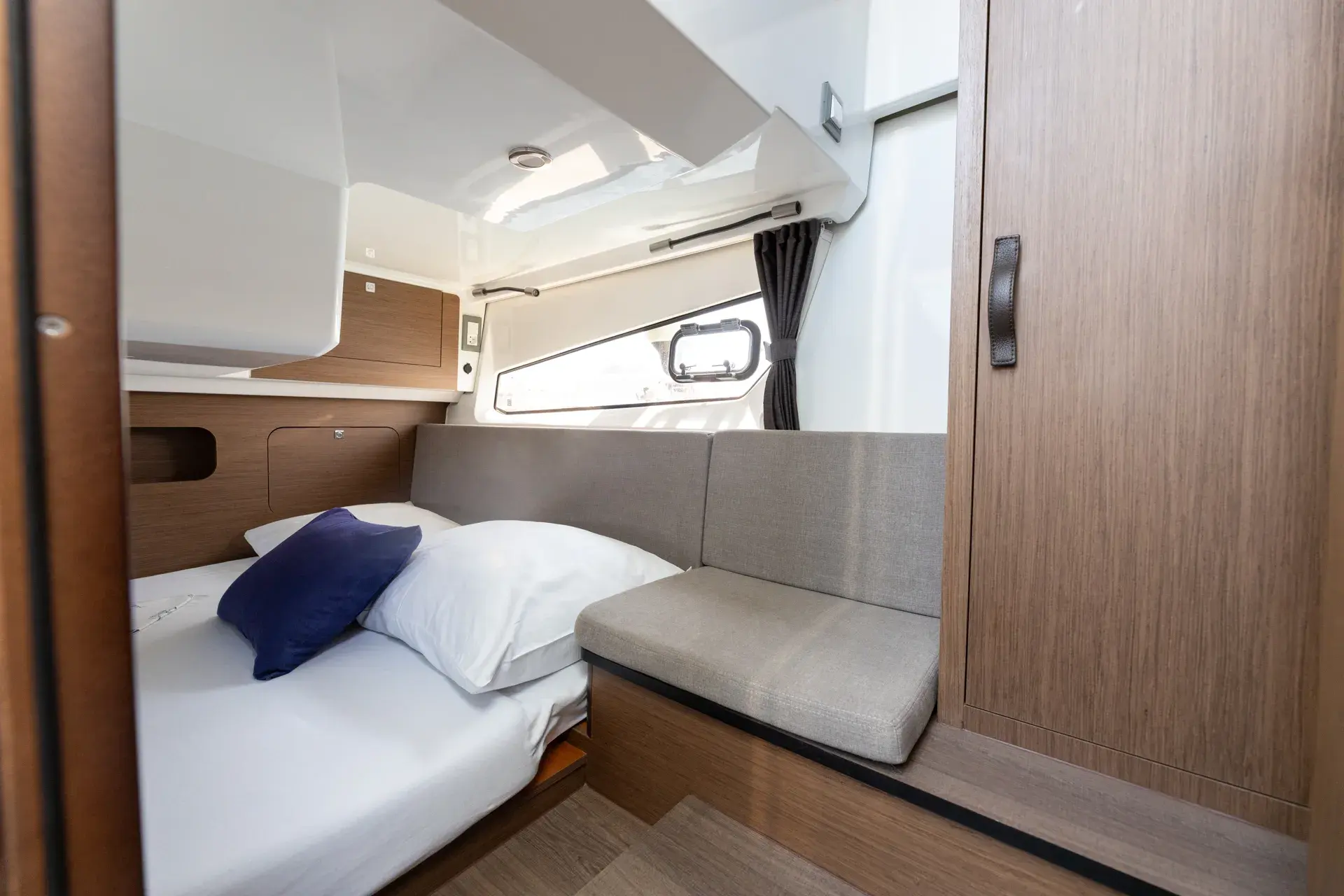 An Bord genießt du ein modernes, elegantes Interieur mit gemütlichen Kabinen, hellem Salon und durchdachtem Layout – perfekt zum gemeinsamen Kochen, Spielen und Entspannen nach einem Tag in den Buchten. Die leistungsstarke Doppelmotorisierung von Mercury mit 2 x 300 PS sorgt für sicheres und zügige Törns zwischen den Inseln.