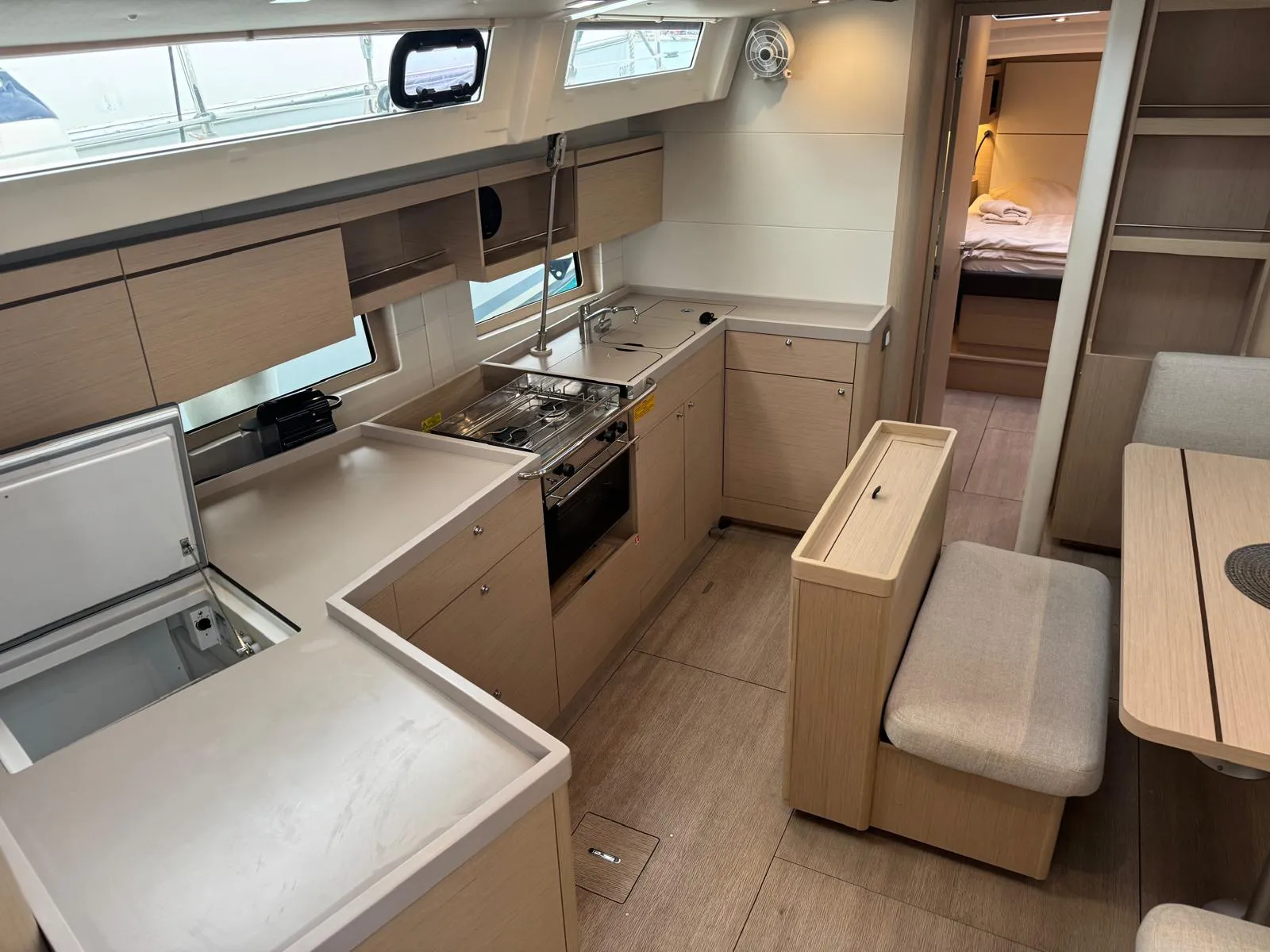 Die Oceanis 46.1 – Anse Soleil ist die ideale Wahl für Gruppen oder Familien und verfügt über ein durchdachtes Innenraumkonzept: