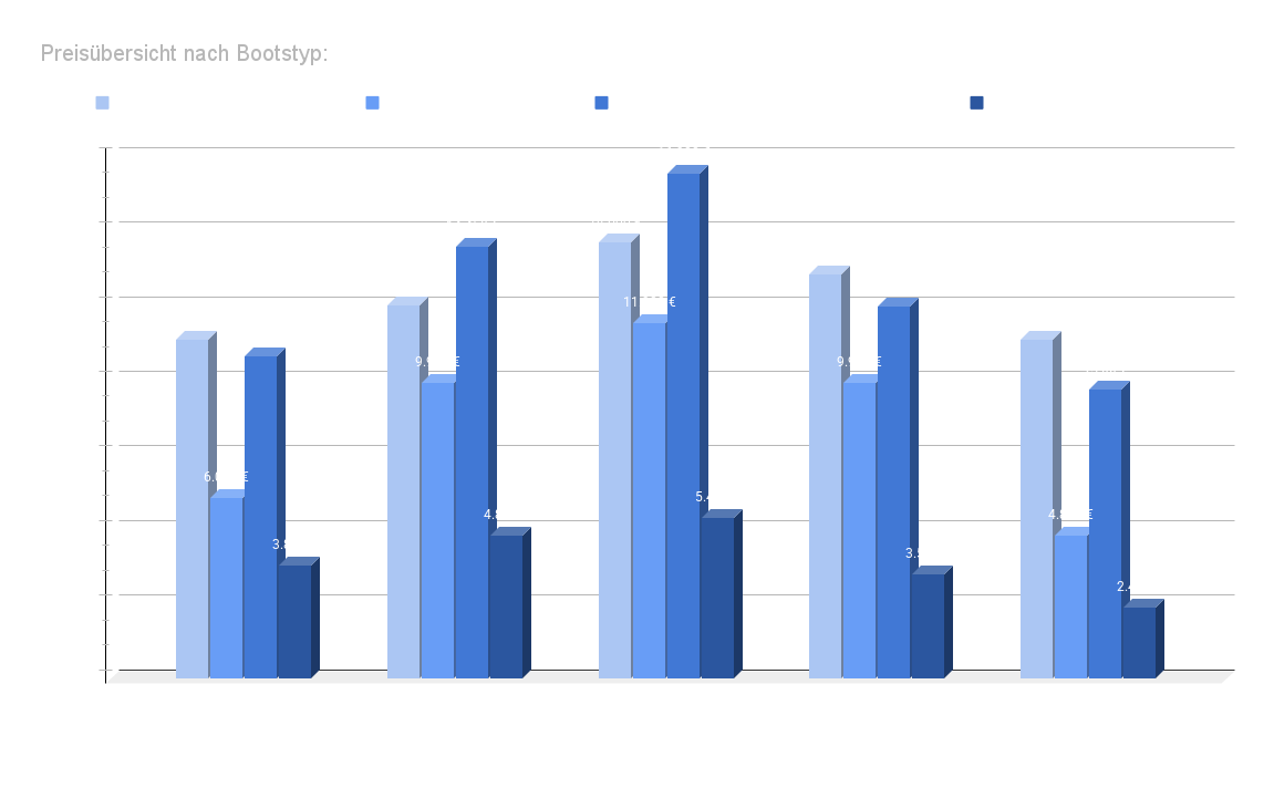 Die Preise können je nach Saison, Bootstyp und Charterdauer stark variieren. In der Hochsaison (Juli, August) sind sie traditionell höher als in den Nebensaisonen Mai/Juni und September/Oktober.