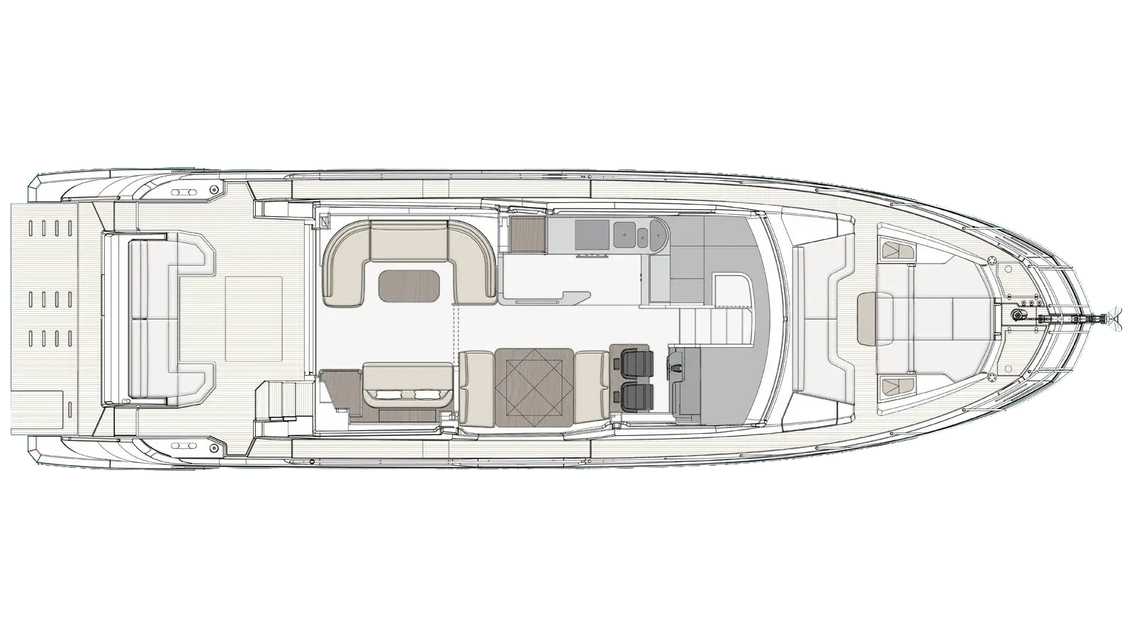 - Spektakuläre Flybridge: Das Markenzeichen dieser Charter Yacht ist die weitläufige Flybridge – ein privates Deck mit atemberaubendem Panoramablick. Ob beim Sonnenbaden auf den Liegestühlen, beim Genuss eines Drinks an der Bar oder beim Essen im Freien, die Flybridge bietet den perfekten Ort, um die Aussicht und die Gesellschaft zu genießen.