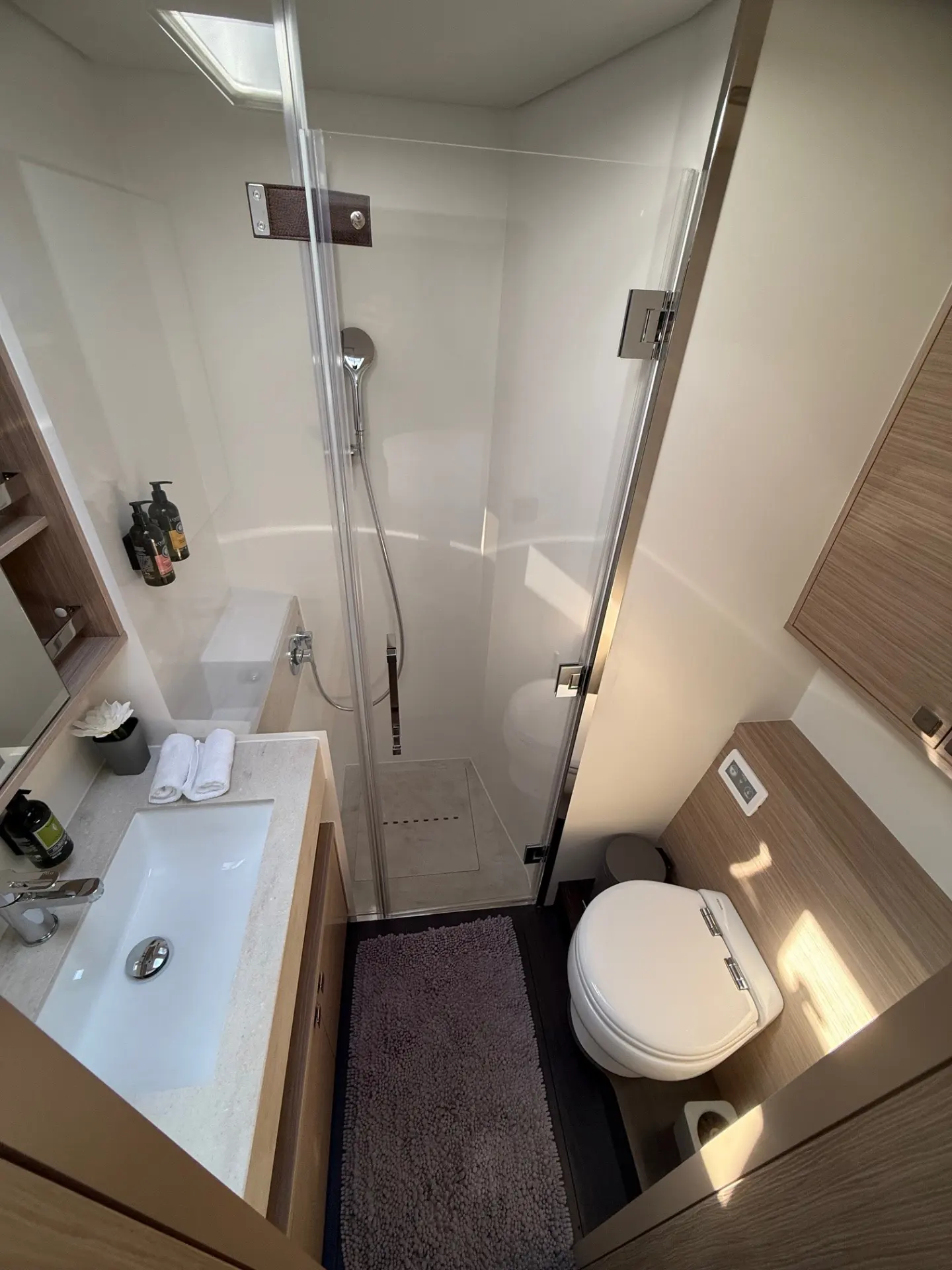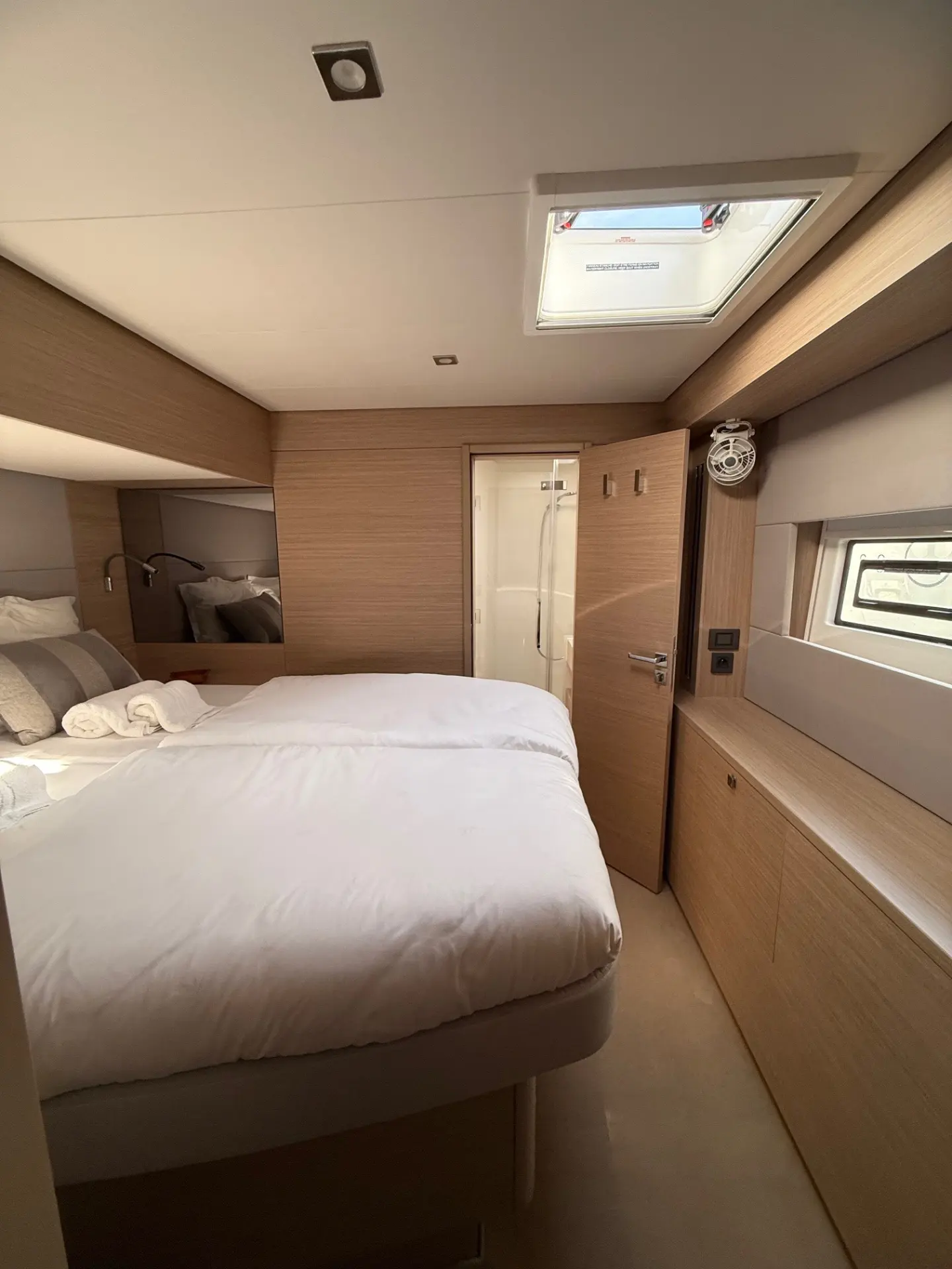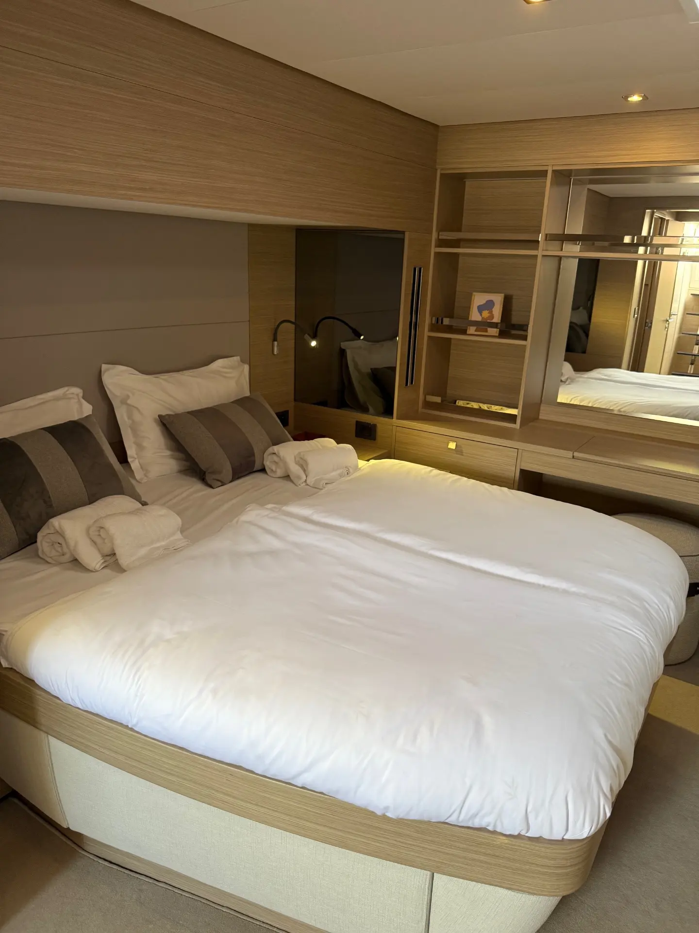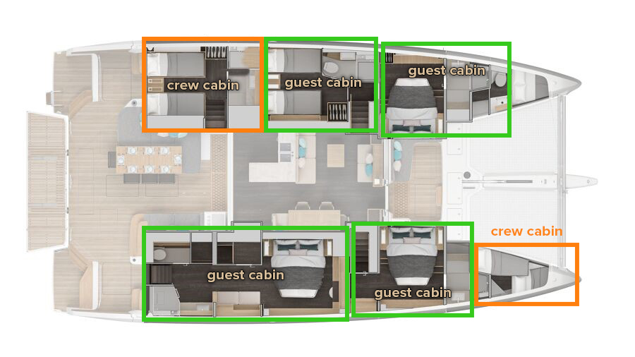 - Geräumige Kabinen: Die Kabinen sind hell, luftig und verfügen über hochwertige Ausstattung sowie private Badezimmer, die einen erholsamen Rückzugsort nach einem Tag in der Sonne bieten.