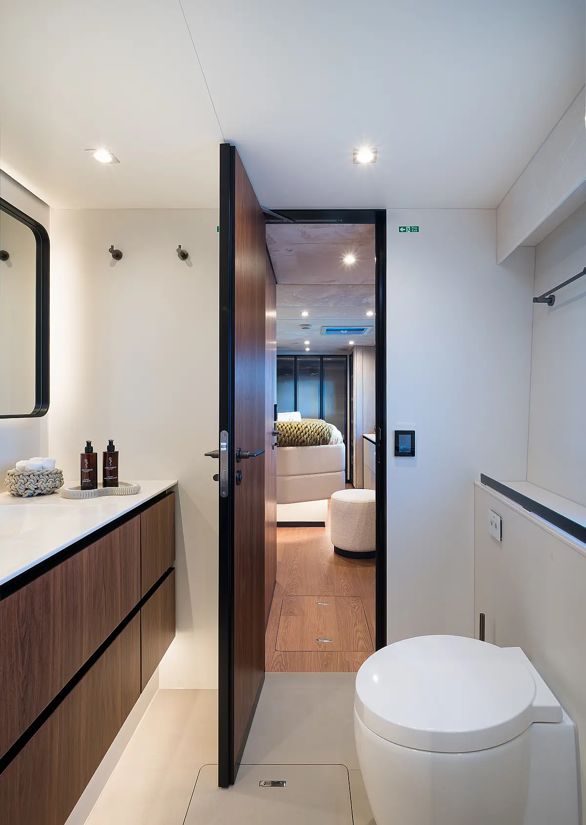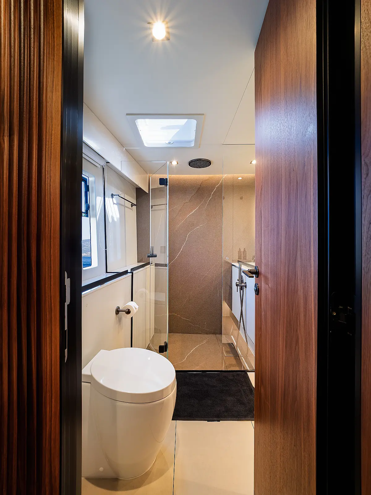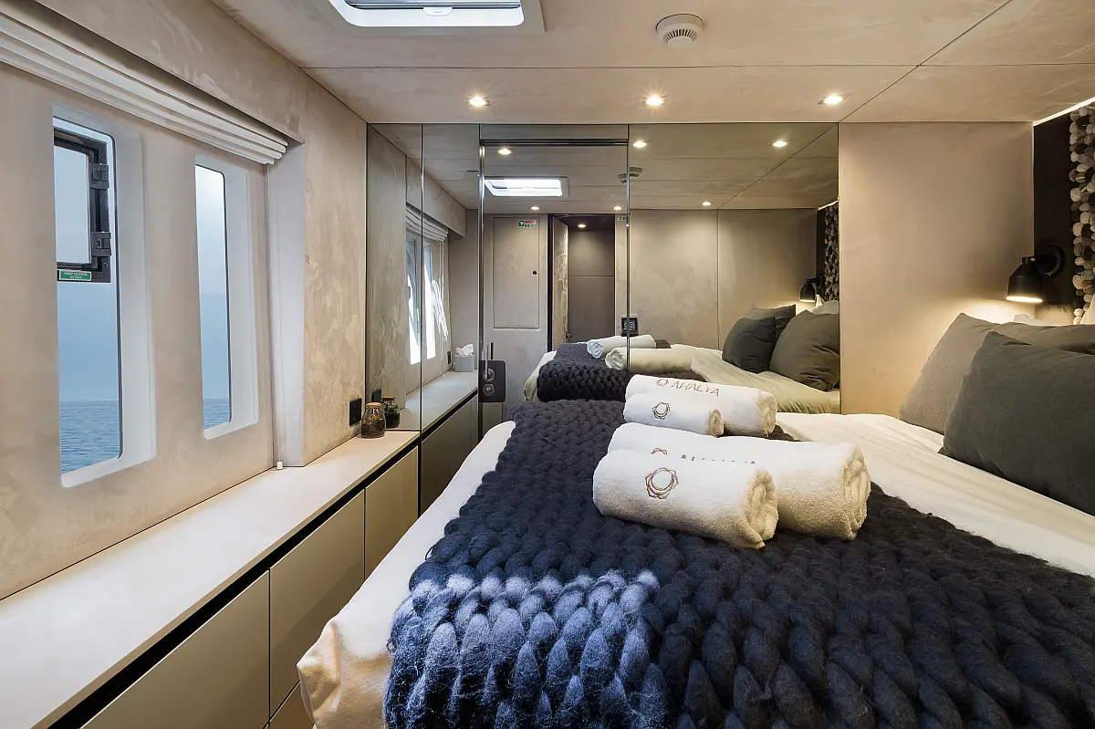 - Komfortable Unterkünfte: An Bord finden bis zu 8 Gäste in 4 elegant gestalteten Doppelkabinen Platz, die jeweils über ein eigenes, luxuriöses Badezimmer verfügen. Diese Kabinen sind darauf ausgelegt, Privatsphäre und erholsame Nächte zu gewährleisten.