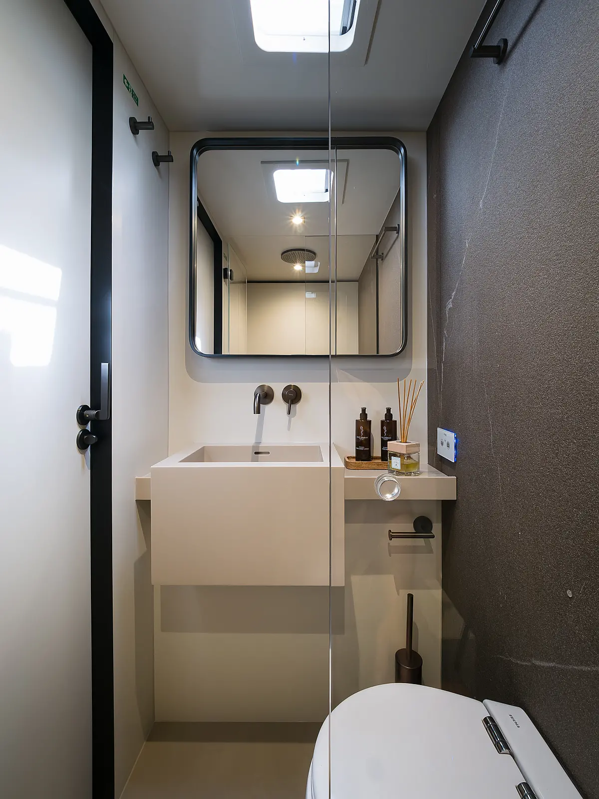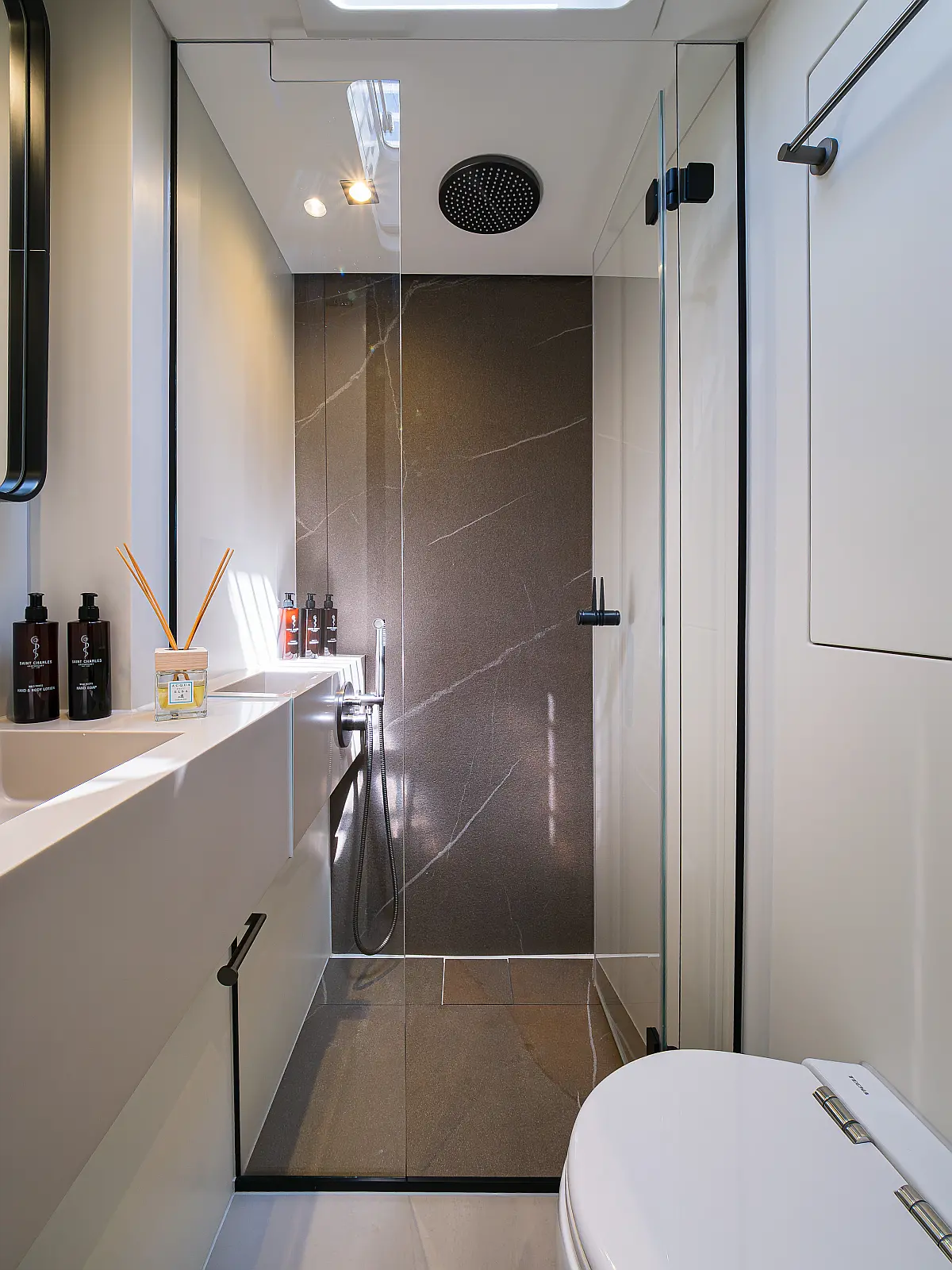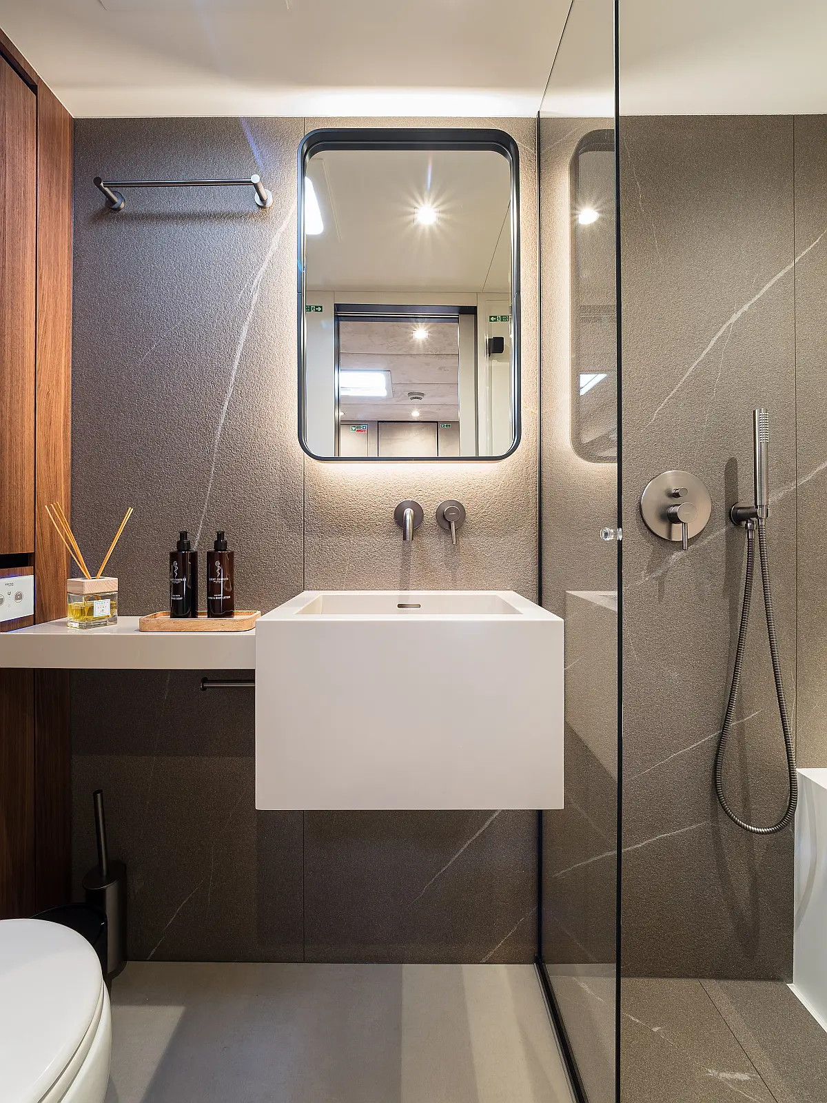 - Komfortable Unterkünfte: An Bord finden bis zu 8 Gäste in 4 elegant gestalteten Doppelkabinen Platz, die jeweils über ein eigenes, luxuriöses Badezimmer verfügen. Diese Kabinen sind darauf ausgelegt, Privatsphäre und erholsame Nächte zu gewährleisten.