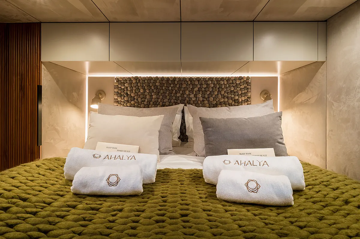 - Großzügige Wohnbereiche: Die „Ahalya“ empfängt ihre Gäste mit weitläufigen Innen- und Außenbereichen, die ein harmonisches Zusammenspiel von Luxus und Funktionalität bieten. Der helle und offene Salon schafft ein Gefühl von Weite und verbindet nahtlos den Wohnbereich mit der umgebenden Natur.