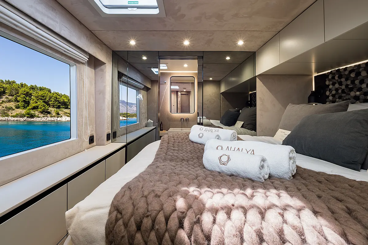 - Hervorragende Leistung: Die Sunreef 60 – Ahalya kombiniert Leistung mit Komfort. Ihre Stabilität und ihr geringer Treibstoffverbrauch machen sie zum idealen Schiff für ausgedehnte Törns entlang der Küste und zu den zahlreichen Inseln Dalmatiens.