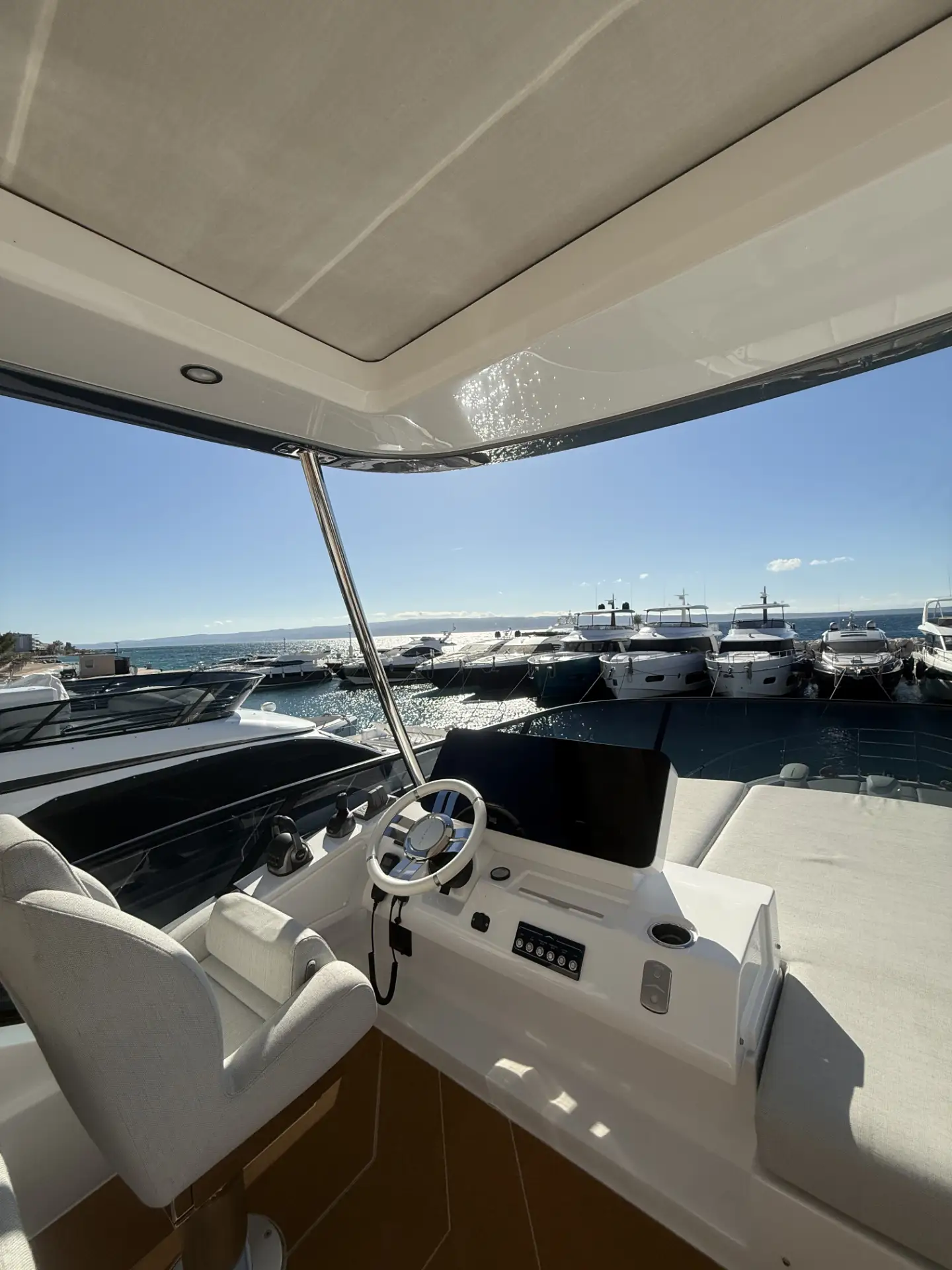 - Der Flybridge-Bereich: Wie bei allen Flybridge-Modellen – denken Sie an die Prestige 520 Fly „Baby Indy“ ab Split – bietet dieser obere Decksbereich eine zweite, erhöhte Steuerstation und einen großzügigen Lounge-Bereich für das Leben im Freien.