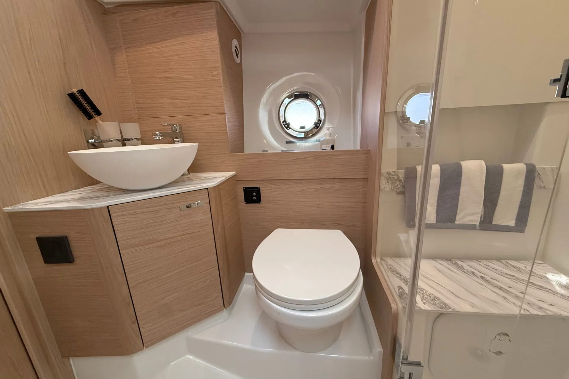 - Kabinen: Unter Deck bietet die Yacht in der Regel zwei geräumige Kabinen (eine Eignerkabine im Bug und eine Gästekabine), die Privatsphäre und Ruhe garantieren. Das Bad ist intelligent konzipiert und bietet ausreichend Platz.