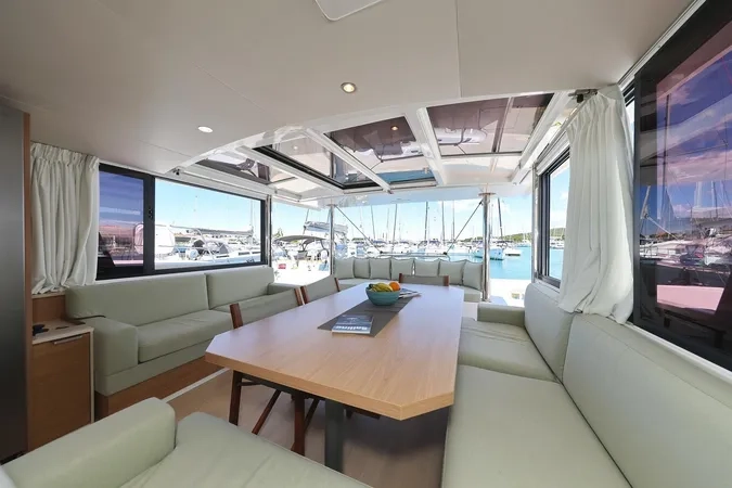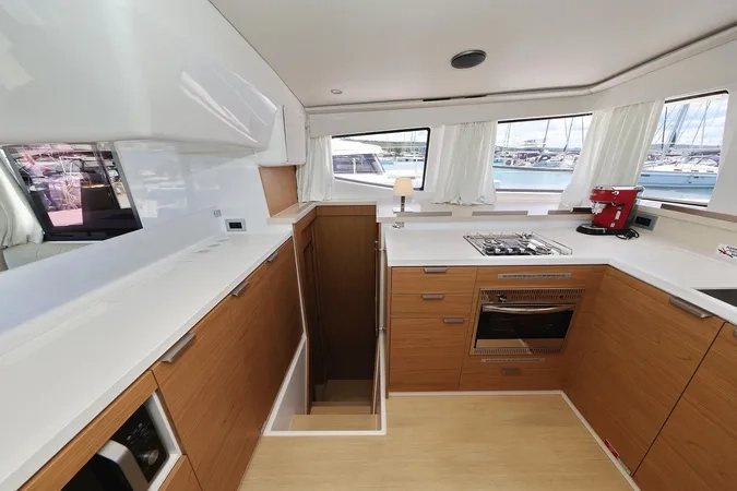 Genießen Sie das Leben auf See mit all dem Komfort, den Sie von zu Hause gewohnt sind: eine moderne Klimaanlage sorgt jederzeit für angenehme Temperaturen, während der leistungsstarke Generator und die Solaranlage eine zuverlässige Energieversorgung auf der Bali 4.4 – Breeze garantieren. Der große Kühlschrank mit Gefrierfach (615 L) bietet genug Platz für sämtliche Vorräte, die Sie für eine Woche voller Entspannung und kulinarischer Genüsse benötigen. Dank des Autopiloten wird das Segeln zum Kinderspiel, sodass Sie sich voll und ganz der atemberaubenden Landschaft und dem blauen Meer hingeben können.
